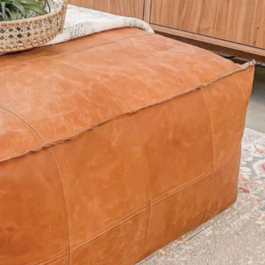 Large Tan Leather Ottoman Coffee table & Pouf LSP1TA