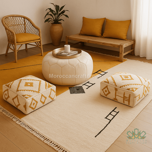 Original Handcrafted Vintage Beni Ourain pouf white Mustard PBW1MU