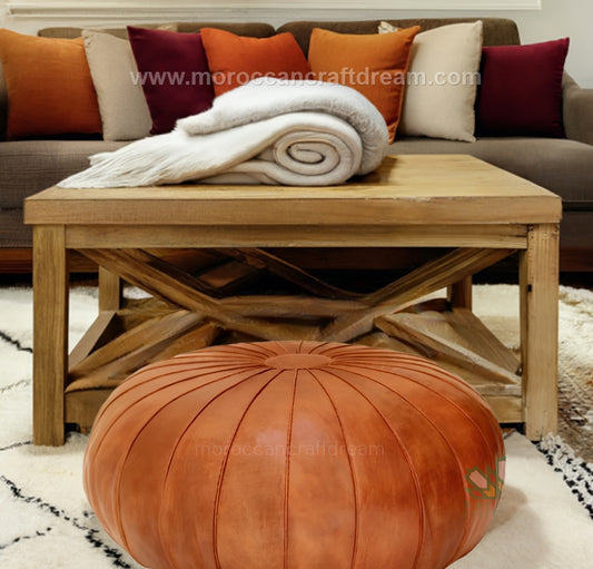 Pouf de luxe marocain en cuir fabriqué à la main en gros 20x20x14" / 50x50x35cm