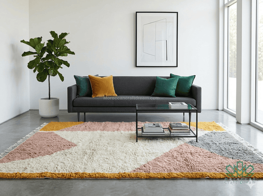 Recommended Rug: Beni Ourain geometric patterns